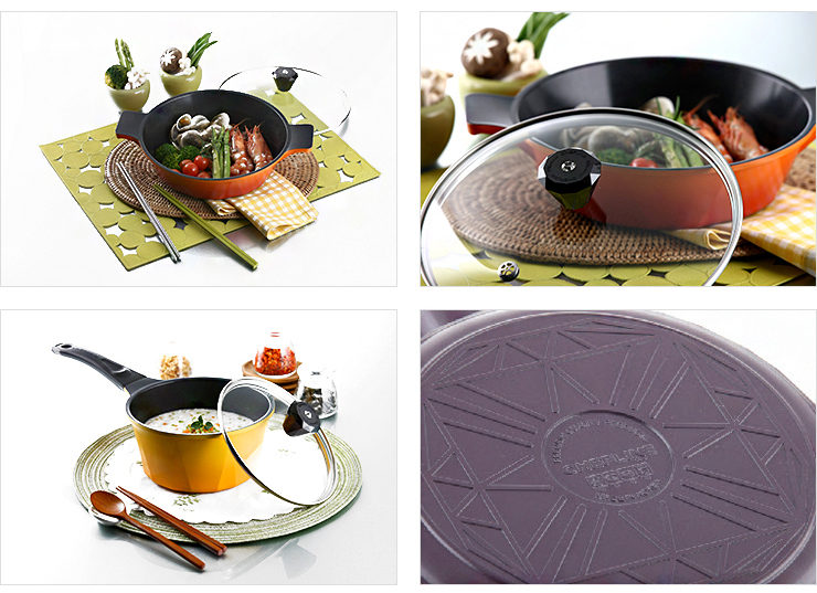 Frypan 20cm(Yellow), Frypan 24cm(Light green), Workpan 26cm(Purple), Frypan 28cm(Red),